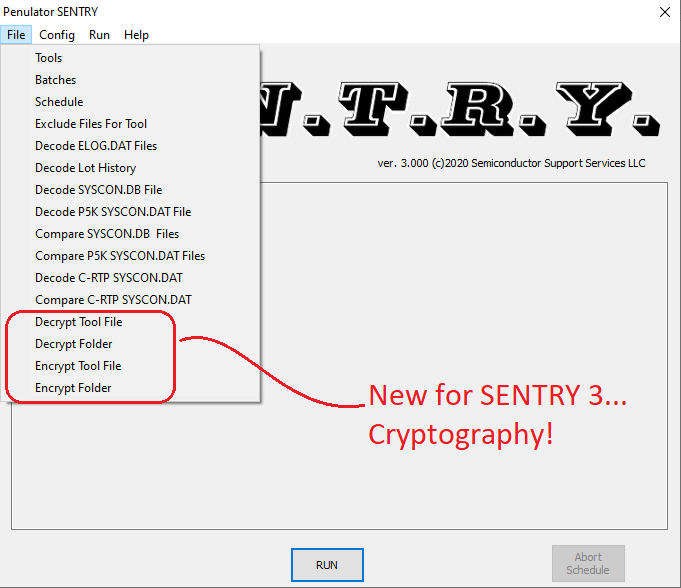 SENTRY software is hosted on a PC and controls the various PDS systems across a network on the AMAT Endura, Centura, Producer, P5000. SENTRY enables many functions such as automated incremental remote backup, file decoding (Recipes, lot history, systcon etc), syscon compare etc.